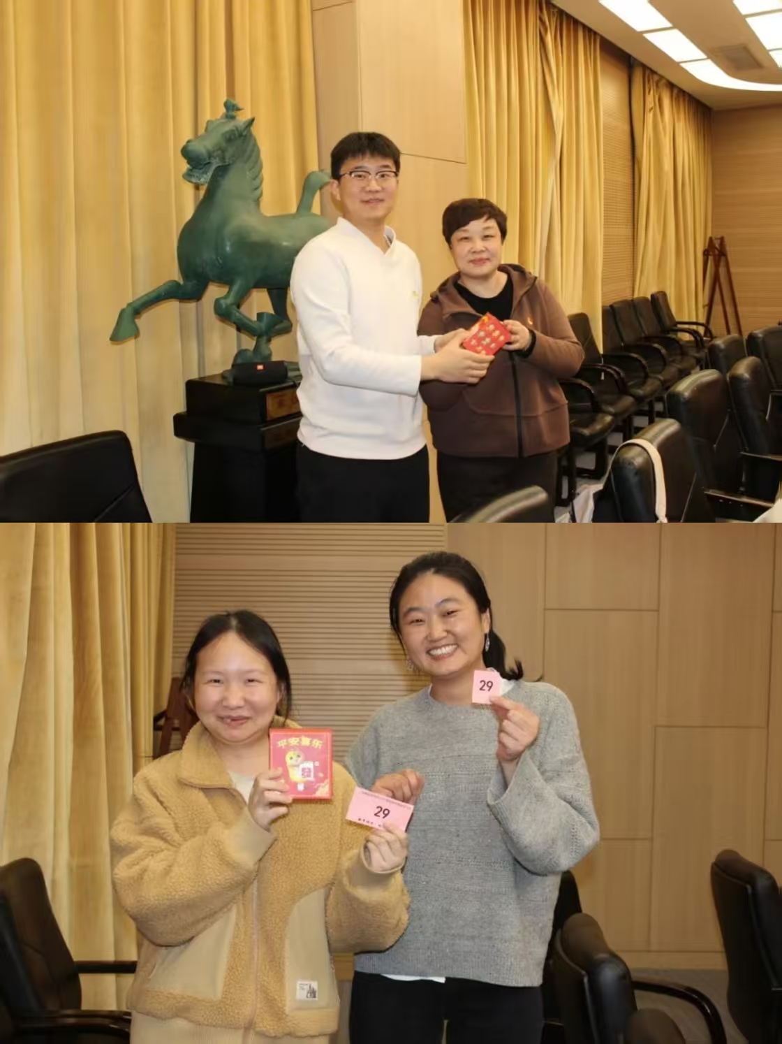 茶话会上,留校学生代表依次做了自我介绍,交流了留校安排、寒假规划和学习生活情况。与会师生围绕职业发展、学业成长、学术科研等话题展开了热烈交流,温馨愉快的氛围洋溢着整个会议室。活动中,还穿插了“击鼓传花”游戏和“幸运抽奖”,师生们极参与,现场气氛热烈。