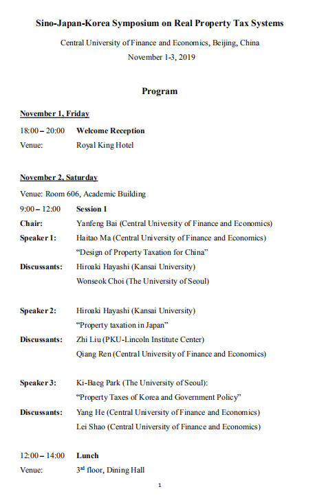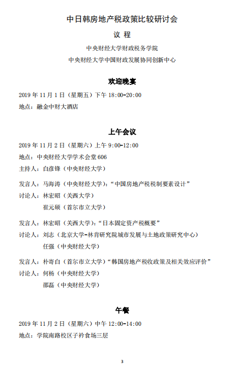 《中日韩房地产税政策比较研讨会》会议议程