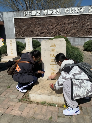 仪式现场,两名学生代表敬献了花篮,全体人员面向纪念碑行三鞠躬礼。随后师生分组为烈士墓碑拂尘扫灰、敬献鲜花。墓碑上金黄滚烫的名字引发学子们深深的哀悼之情,他们用生命守护的,正是我们今天脚下的土地。