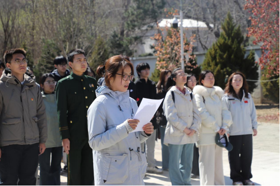 庄重的祭扫仪式在烈士纪念碑前举行。全体师生肃立垂手,聆听陵园讲解员讲述昌平地区革命先烈浴血抗战的历史。学生党员代表周雨彤在悼词中深切缅怀先烈,表示“一定要铭记英烈精神,以青春奋斗践行新时代使命”。陈绮文副书记在讲话中指出,此次活动既是党史学习教育的实践课堂,也是锤炼党性的精神洗礼,勉励师生将先烈精神转化为奋进动力,在专业领域勇担时代重任。