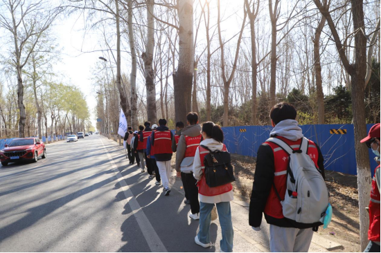 上午8时20分,师生在沙河校区东区食堂南侧小广场集合。学院党委副书记陈绮文进行行前安全教育,强调活动纪律,带领大家进行热身运动,分发统一荧光马甲及补给物资。队伍沿规划路线徒步前往烈士陵园,全程保持单列队形沿人行道有序行进,历时两个半小时徒步10公里顺利抵达。