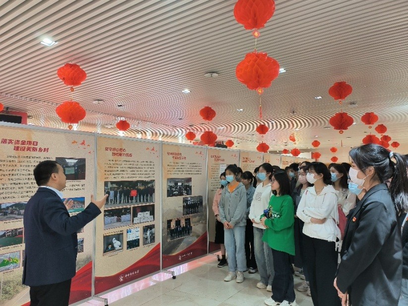 为深入学习贯彻习近平新时代中国特色社会主义思想和党的二十大精神,切实推动学习贯彻习近平新时代中国特色社会主义思想主题教育走深走实,进一步做好机关党委联系学院结对共建活动,4月20日上午,学生工作部、学生处、武装部党支部联合会计学院本科生第一党支部在学院南路校区学术会堂39号空间开展了《奔赴——中央财经大学助力甘肃宕昌乡村振兴纪实》主题展览参观学习。活动邀请学校对口支援办公室田光华老师,围绕“打赢脱贫攻坚战,助力乡村振兴路”主题,结合援派宕昌县哈达铺镇玉岗村驻村第一书记的扶贫挂职经历,为师生党员上了一堂生动深刻的党课。