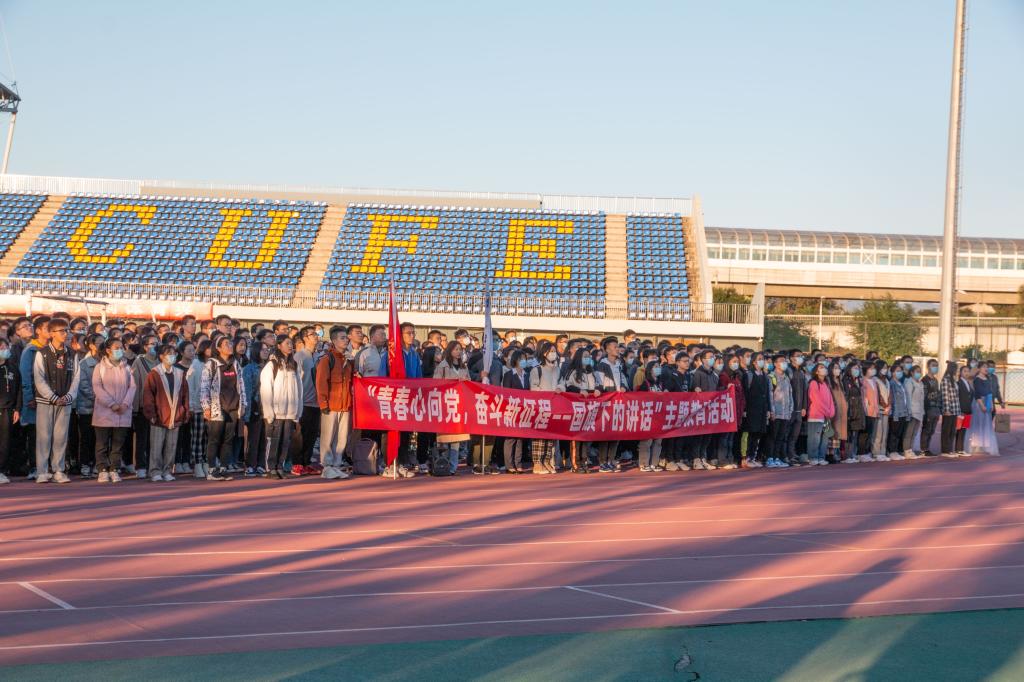10月11日早上7点,第一期主题教育活动在两校区同时开展,副校长朱凌云,学生工作部、学生处、武装部部(处)长于晓明,来自财政税务学院、会计学院、管理科学与工程学院、体育经济与管理学院、中国经济与管理研究院等600多名师生共同参加了本次活动。