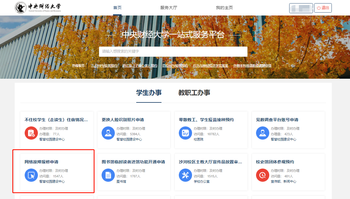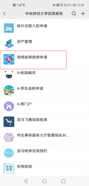 图1.“中央财经大学信息服务”企业号报修界面