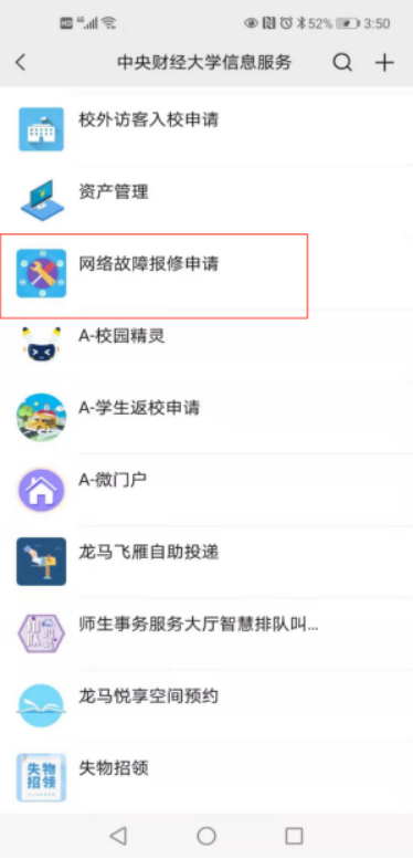 有任何网络、一卡通和信息化相关问题,均可在网上办事大厅或”中央财经大学信息服务”微信企业号中的“网络故障报修申请”模块 ,提交报修申请,工作人员会在收到申请后与您联系。(联系方式推荐预留北京本地手机号,没有本地手机号的可以留下微信号、QQ号码等联系方式)。