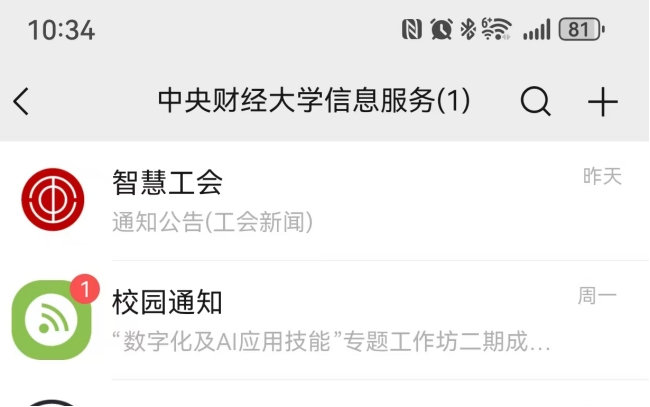 初次登录“中央财经大学信息服务”微信企业号的用户可直接弹出新的服务页面,其他用户需要下拉企业号页面,消除手机缓存来弹出新的服务页面。