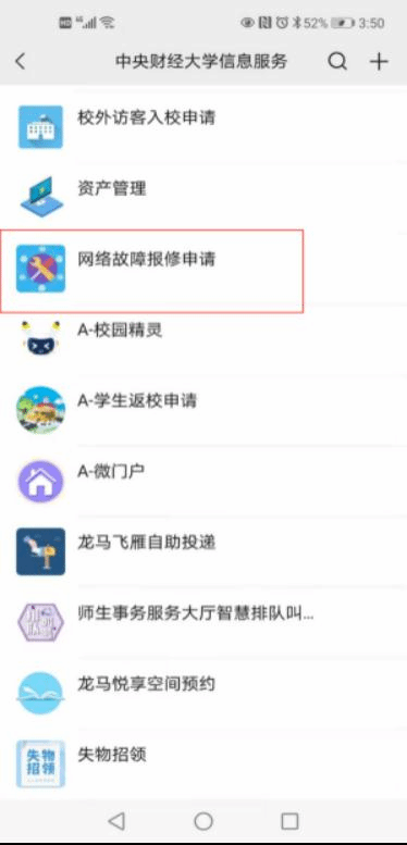 有任何网络和一卡通相关问题,均可在网上办事大厅或”中央财经大学信息服务”微信企业号中的“网络故障报修申请”模块 ,提交报修申请,工作人员会在收到申请后与您联系。(联系方式推荐预留北京本地手机号,没有本地手机号的可以留下微信号、QQ号码等联系方式)。