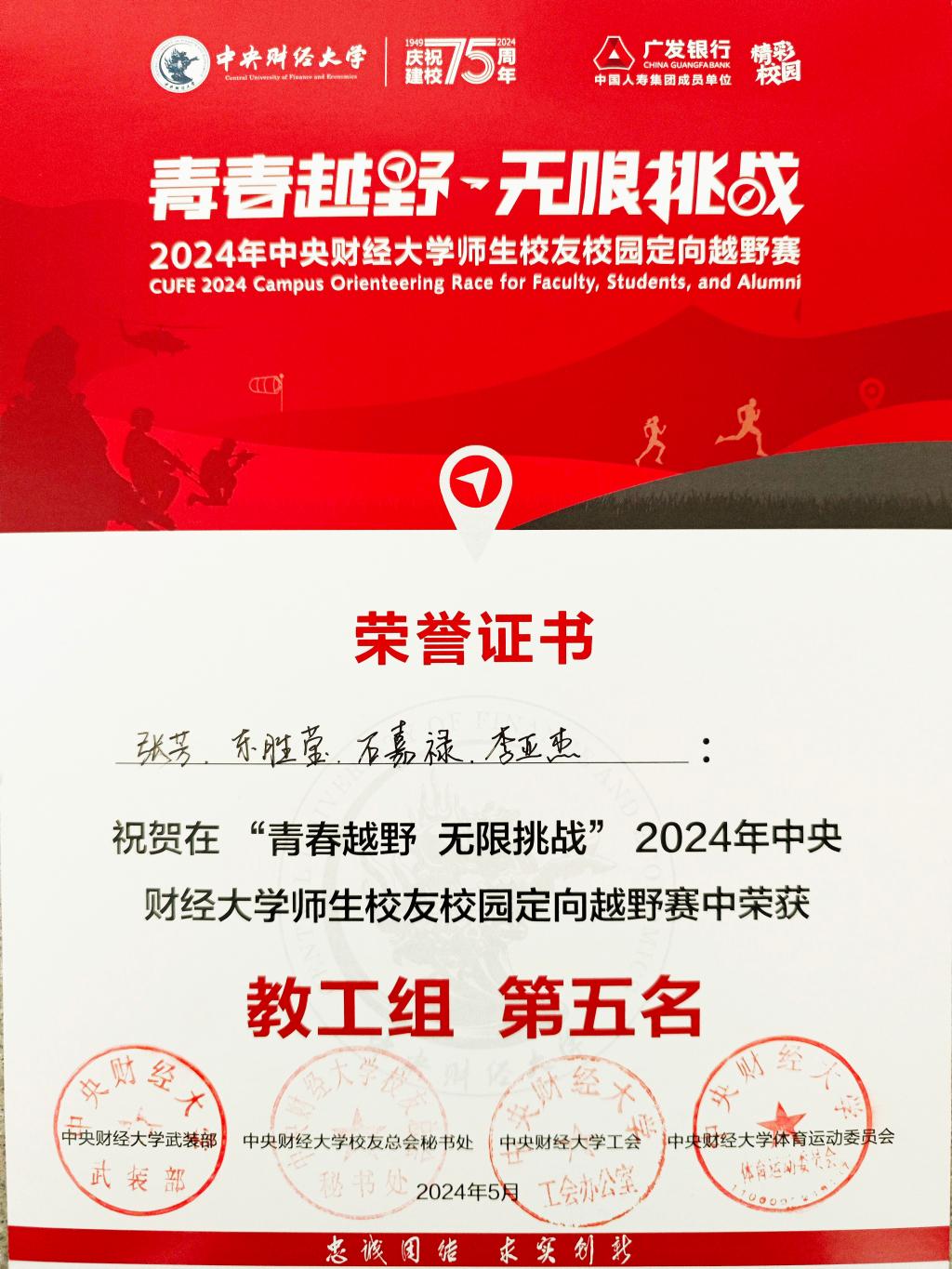 本次校园军事定向越野赛以“探索、挑战、成长”为主题,旨在丰富师生的课余生活,增强体质,培养团队协作精神和应变能力。全校师生共有400余人120支队伍参加了比赛,教工组的参赛不仅为比赛增添了一份独特的氛围,更为学生树立了积极向上的榜样。经过激烈的角逐,我中心四位教工组成的“智慧先锋”代表队以出色的表现荣获第五名,充分展示了我校教师的团队协作精神和积极向上的精神风貌。