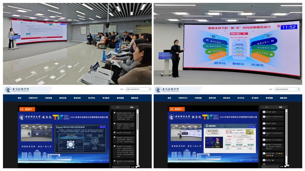 2025年1月15日,智慧校园建设中心助力由教务处主办的“2024年度中央财经大学教师教学创新大赛”在学院南路校区实验楼304高清直录播室举办,并依托龙马在线学堂进行直播。我校师生身处校内、校外都能够通过直播参与到比赛观摩中来,在线观看量2661人次,点赞量突破3000次,评论量80余条。
