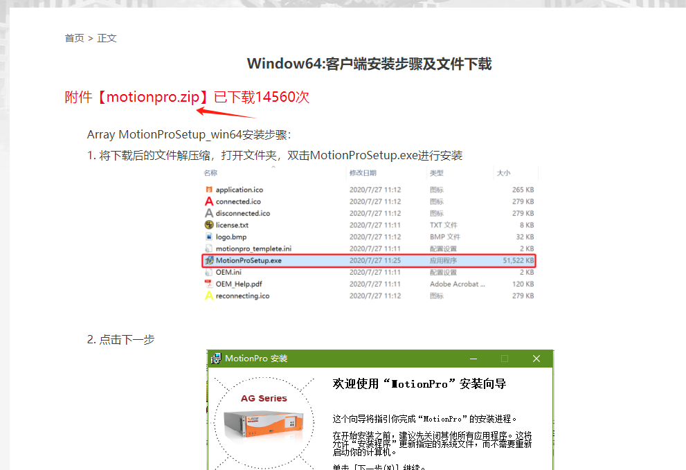 点击“motiopro.zip”,下载客户端软件