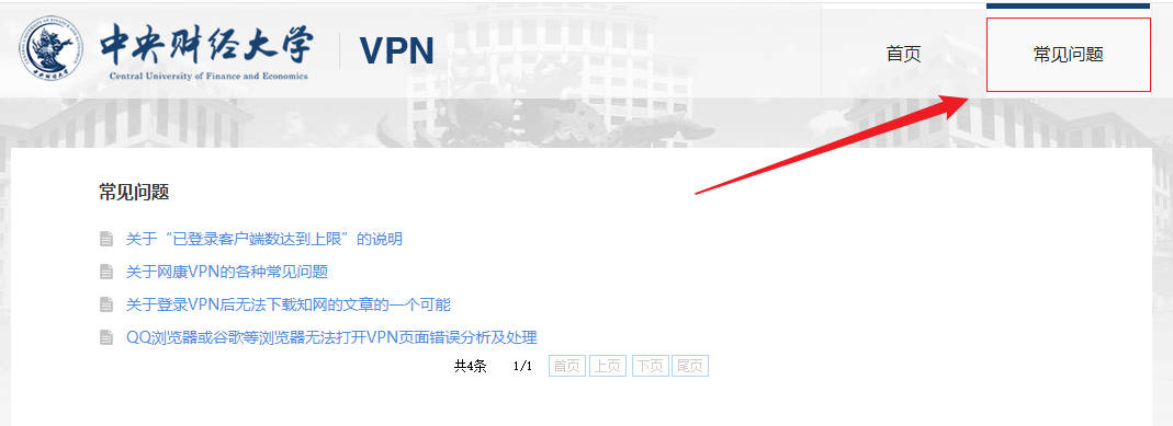 5.常见问题可登录网页:http://vpn.cufe.edu.cn/中“常见问题”一栏查看。