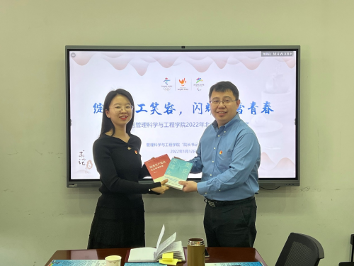 1月12日中午,管理科学与工程学院开展“绽放管工笑容,闪耀冰雪青春——欢送管理科学与工程学院2022年北京冬奥会志愿者”主题活动。学院党委书记姜涛,学院党委副书记贾传亮,校党委组织部副部长、学院共建联系党支部学校机关党委组织部党支部代表姚逍,与我院即将启程奔赴冬奥服务保障工作一线的16位志愿者品茶叙谈,学院团委书记高舒娅和部分团支部团员骨干代表参加。